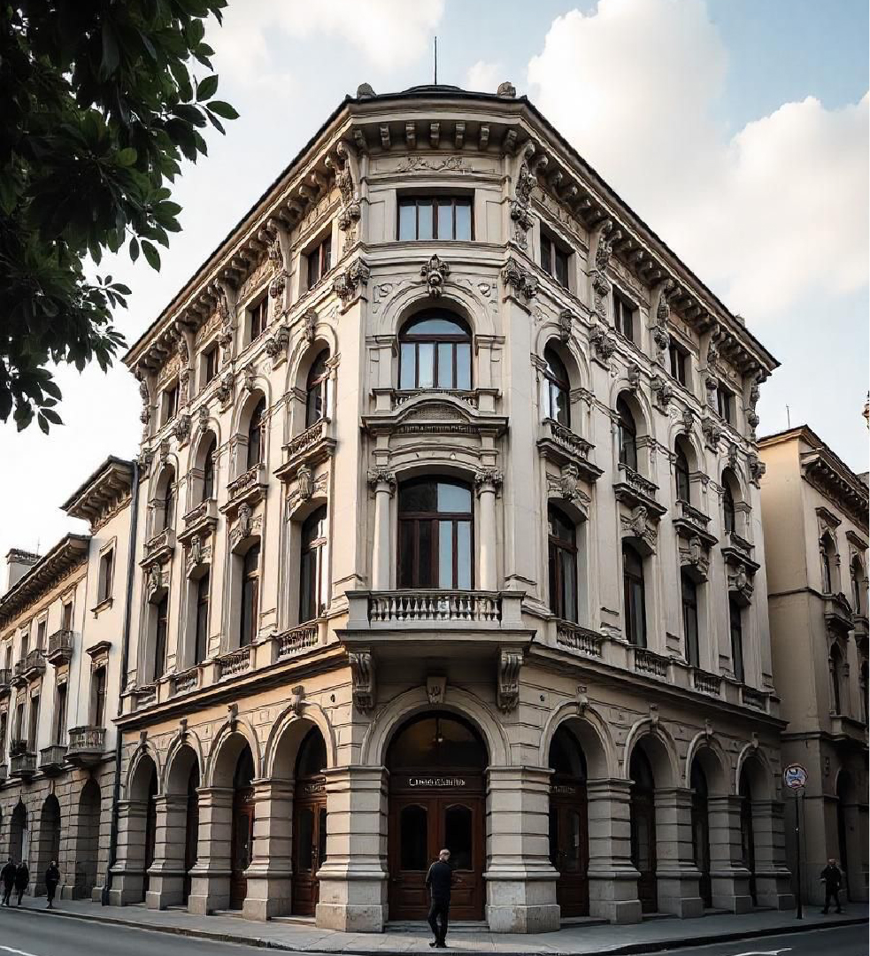 Restauro e pulizia delle facciate esterne di immobile sottoposta a tutela delle Belle Arti con ristrutturazione interna del piano superiore adibito ad uffici private. Rinnovo affreschi della Sala Delle Grottesche, adibita ad esposizione storica.